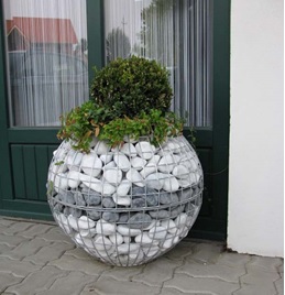 Слово «габион» происходит от итальянского «gabbione» и означает «большая клетка». Эти клетки-корзины наполняют самым различным материалом, но в основном природным камнем, булыжником, крупной галькой или деревом. В мире габионные конструкции применяют уже довольно давно. Так, изначально они были предназначены для укрепления берегов, склонов и насыпей. С годами для них нашлось и другое, более творческое но при этом эффективное применение. В течение последних десяти лет в садах начали появляться габионы-скамейки, стены, ограды, светильники, элементы декора. Выбор материала для наполнения габионов очень широк – это гранит, базальт, кварцит, доломит, известковый камень или же разноцветные камешки из стекла. Благодаря им сад приобретает оригинальность и неповторимость.