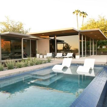 В саду в стиле модерн (минимализм) бассейн выполняет не только эстетическую, но и практическую функцию. Отдайте преимущество четким линиям и ограничьтесь минимальным количеством деталей. Пространство между домом и бассейном можно превратить в мини-сад, украсив его травами и камнями. Широкие бортики можно заменить на патио вокруг бассейна. Выбирайте геометрические формы и классические цвета, тогда ваш современный бассейн полностью будет соответствовать дизайну дома.