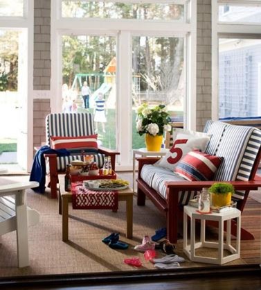 Ничто так не наполнит ваш зимний сад комфортом и красотой как непринужденный, свободный стиль. Это дизайн, включающий краски всех четырех времен года, который, безусловно, захватывает дух. Находясь в таком саду, вы будете чувствовать себя как в уютной гостиной. Красные, белые и синие полосы делают это помещение уютным и привлекательным. Весь интерьер содержит мотивы и украшения, соответствующие каждому времени года – весне, лету, осени и даже зиме.