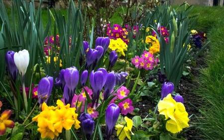 Тюльпаны, нарциссы, крокусы, гиацинты формируют красивые яркие клумбы и эффектно выглядят в сплошных цветочных массивах.