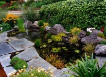 Обустраивая водоем с рыбами, важно помнить, что их количество не должно превышать двух особей длиной от 10 см на 100 л воды. Крупные рыбы, например лини и карпы, мутят воду, поднимая грунт со дна, и ослабляют корни растений, поэтому следует укрепить последние с помощью гальки.