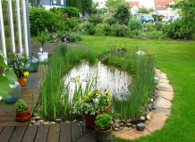 Такая же процедура выполняется и с другими водными растениями. Например, с кувшинками. У большинства водных растений в искусственном водоеме осенью образуется зимующие почки. Для того, что бы растение благополучно перезимовало, эти почки, как правило, опускаются ко дну. От каждого растения из декоративного пруда обрезают несколько таких почек и на зиму убирают в помещение. К весне они прорастут и их можно будет вернуть в пруд. Между прочим, из них новые растения образуются быстрее. Чтобы водные растения в неглубоких водоемах зимой не погибли, поздней осенью их переносят в подвал или в более глубокие водоемы, обрезав подсохшие листья ближе к корневищам. Для этого растения сначала высаживают в специальные корзины, которые можно сделать самому или купить в специализированном магазине. Это значительно облегчит процесс переноса растений, который приходится делать каждый год, и поможет сохранить их на долгие годы. Все водные растения, которые будут зимовать в незамерзшей воде, нужно переместить к середине водоема. Если на зиму сливают воду из искусственного водоема, то высаженные в грунт водные растения обязательно накрывают.
