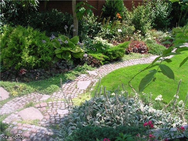 Если же Вы построили современный европейский дом, просто делайте то, что Вам больше всего нравится. Источником вдохновения могут стать фото уже состоявшихся садов в журналах или на специализированных сайтах. Стоит собрать коллекцию наиболее красивых на Ваш взгляд ландшафтных решений, постараться проанализировать, из каких деталей и по каким принципам собрана гармоничная картинка. Возможно, Вас вдохновят оригинальные, нетрадиционные находки современных мастеров ландшафтного искусства или напротив, примером станут классические, проверенные временем английские пейзажные цветники. Главное, чтобы участок Вам нравился и приносил удовольствие, был удобен для жизни и отдыха, а также не отнимал много времени для ухода.
