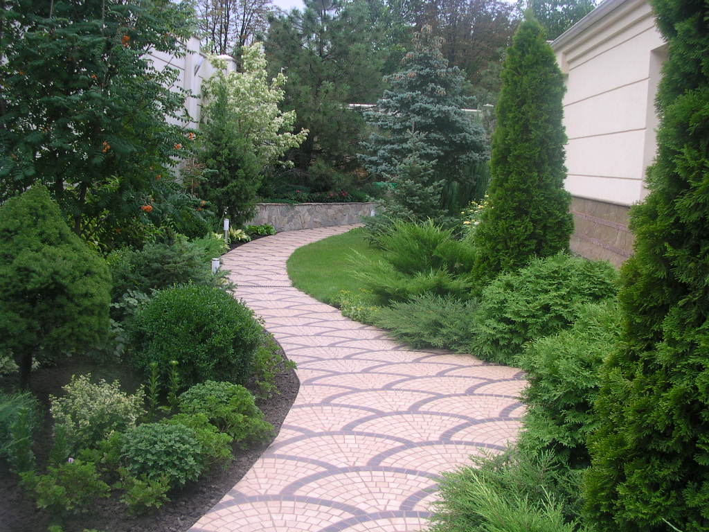После того как дом и основные строения возведены, можно приступать к планированию дорожек, площадок и проездов. Продумайте, из какой точки А в какую точку В Вам необходимо ходить и как часто. Постарайтесь на своем плане соединить эти точки сначала по кратчайшему расстоянию. Затем посмотрите, где возникают перекрестки, какие дорожки можно совместить и плавно изогнуть, обходя препятствия, оцените нагрузку и интенсивность движения по каждой из них (например от калитки к входу в дом, от дома к беседке, от беседки - на огород и в сад). Основные дорожки с интенсивным движением обычно планируют шириной не менее 1 м, с расчетом на то, чтобы на ней могли разминуться 2 человека, прогулочные или второстепенные, используемые не каждый день или с меньшей интенсивностью (круговая по участку, на огород, к компостной куче или для ухода за альпийской горкой) могут быть уже - от 40-60 до 80см. В зависимости от нагрузки, нужно правильно выбрать также материал и вид мощения.