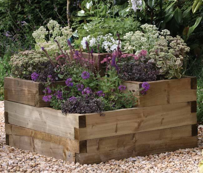 Очень эффектно выглядят растения в деревянные ящиках различных размеров, выполненных в виде блока из нескольких секций.