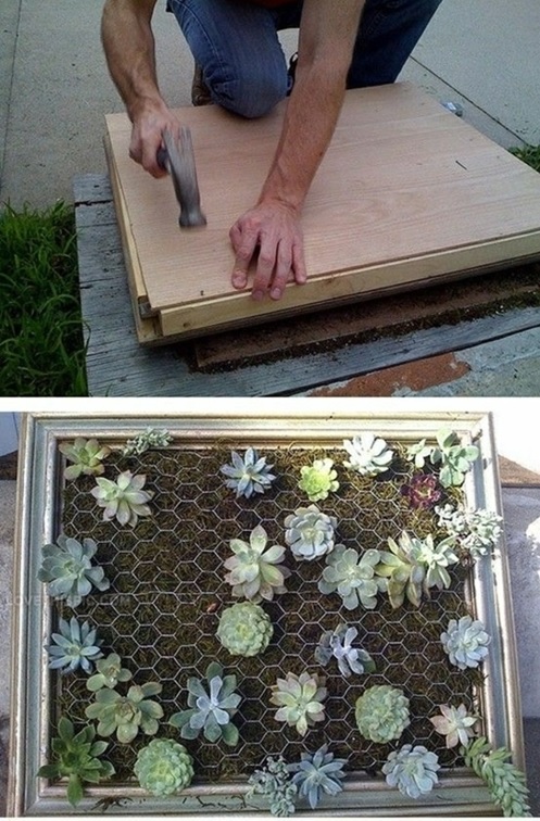 Вертикальный сад занимает совсем немного места, так как крепится к стене. Практически Вам необходимо только построить конструкцию, напоминающую картинную раму – и половина дела сделана. Чтобы не начинать с нуля, поищите в своем доме подходящие предметы – деревянные поддоны, картинные рамы из дерева или даже старые выдвижные ящики, которые отлично подходят из-за того, что имеют множество отделений.