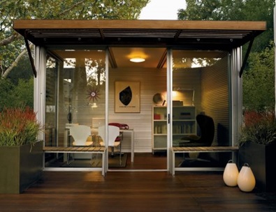 Ребенок на руках, телефон у уха, ноутбук в саду – кто работает, не выходя из дома, прекрасно знает, насколько трудно сосредоточиться на работе, так как постоянно отвлекают какие-либо бытовые мелочи. Все эти нюансы можно решить, создав рабочий кабинет, где можно было бы уединиться, обдумать новые идеи или сделать пару важных звонков.Чтобы отделить рабочий процесс от домашних хлопот европейские дизайнеры предлагают обустроить свой домашний мини-офис, который можно гармонично вписать в ландшафтный дизайн загородного дома. Согласитесь со мной, что приятнее работать не в душной квартире, а на открытом воздухе среди пышной зелени и цветов, в спокойной обстановке.
