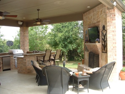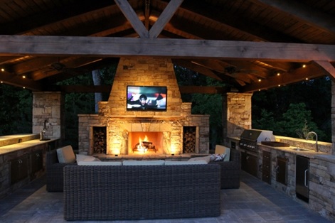 Чтобы пользоваться летней кухней в любую погоду, хорошей идеей будет оборудовать ее в закрытой беседке. Имеются ввиду беседки с большими окнами, которые в теплые дни можно открыть или же вынуть. Преимуществом таких беседок является то, что зимой они отапливаются. Тихое потрескивание дров в камине сделает ваш романтический отдых незабываемым.