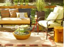 Мягкие и практичные ковры являются любимым элементом декора, который гармонично дополняет интерьер дома или открытого пространства. Любую зону отдыха вы можете освежить приятными красками и создать уютную атмосферу как на террасе, так и во внутреннем дворике, вымощенном плиткой. Ковер, гармонирующий по цвету и стилюс террасой, придает ее интерьеру определенную завершенность. Если в этом году вы увеличили количество кадочных и горшечных растений, не забудьте о силе ковров, которые выгодно подчеркивают их красоту.