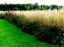 Если вы желаете, чтобы ваша живая изгородь уже в мае служила надежной защитой от посторонних взглядов, рекомендуется добавить в комбинацию вейник остроцветковый (Calamagrostis 1 acutiflora ’Karl Foerster’), который отрастает очень рано, в июне появляются цветочные стебли. Придать густоту и пышность цветущей в летний период изгороди помогут различные сорта мискантуса.