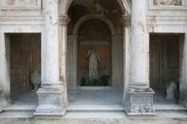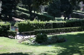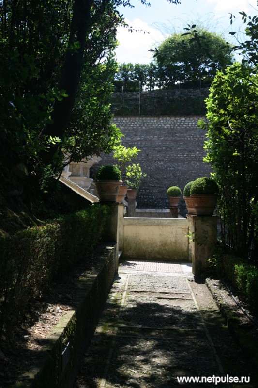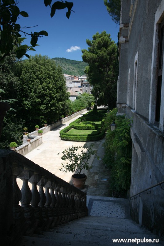 Самая верхняя терраса виллы заканчивается балконом с балюстрадой с левого конца, который обеспечивает обширный вид на равнину внизу. Симметричные двойные лестничные пролеты, расположенные по сторонам центральной дороги, ведут к следующей террасе сада, где с одной стороны располагается Грот Дианы, богато украшенный фресками и ракушечной мозаикой, а в центре – Fontana del Bicchierone ("Фонтан большого кубка"), ошибочно считавшийся работой Бернини, где вода струится из, как кажется, натуральной скалы в пруд в форме раковины.