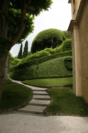 Подлинный шедевр Бальбьянелло - панорамный расположенный террасами сад, где доминирует элегантная крытая галерея. Пространство, которое каменистое окончание полуострова обеспечивало амбициозному кардиналу, было весьма стесненным, и недостаток земли вызвал значительные проблемы при высадке новых экземпляров растений. Именно поэтому здесь было невозможно создать характерный итальянский сад, хотя многочисленные живые изгороди из лавра и самшита обрамляют лужайки с геометрической четкостью, и также невозможно создать английский сад. Таким образом, сад Бальбьянелло является чем-то уникальным, единственным в своем роде, где все имеет отношение к озеру, его береговым линиям и очарованию воды.