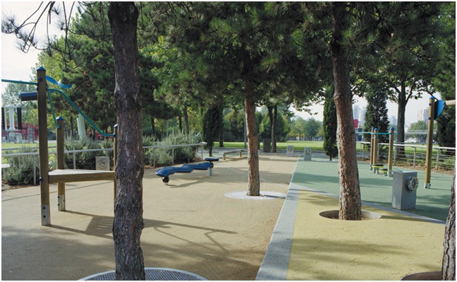 Сад ветров и дюн (Jardin des Vents et des Dunes) для детей до 12 лет и сопровождающих их взрослых в стиле морского пейзажа. Основная линия сада – это волнистая стена со встроенными развивающими спортивными снарядами и оборудованием (батуты, корпуса лодок, ветряки с педалями и т.д.).