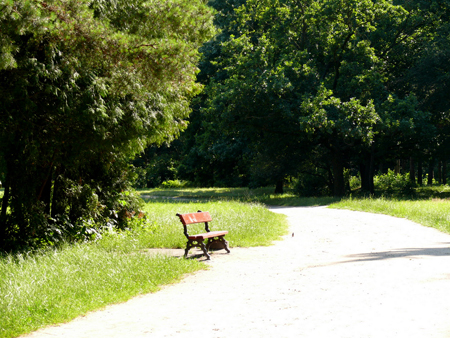 Пройдемся по аллеям и дорожкам парка, вдохнем чистый, наполненный ароматами зелени воздух и слегка прикоснемся к счастливому прошлому этого парка.От главного входа, где посетителей встречают бюсты Пушкина и Шевченко, установленные здесь уже в советские времена, ведет длинная прямая аллея. Когда-то по этой аллее подъезжали экипажи к роскошным павильонам, построенным в стиле позднего классицизма.