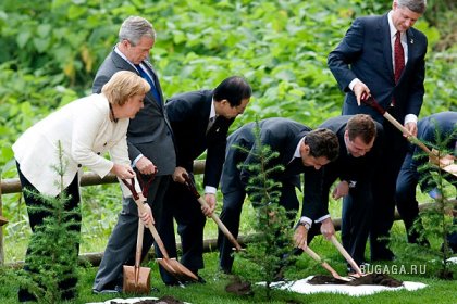 Традиция сажать деревья в знак дружбы и благих намерений хорошо прижилась в мировой политике. Трудно сказать, хорошо ли живется растениям, но политики, поорудоувавшие лопатой, должны чувствовать себя немножко героями - все-таки, совершили на одно доброе дело больше.