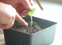 Осторожно поместите черенки в ямки, которые вы сделали в почвосмеси, и нежно утрамбуйте почву вокруг них. Вы можете посадить несколько черенков в один контейнер. Разместите их так, чтобы их листья не касались друг друга.