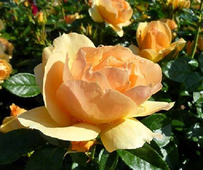 Чайно-гибридная роза «'Chandos Beauty'» британского селекционера Харкнесса была отмечена не только «Почетной премией за лучший аромат роз», но и награждена золотой медалью в категории «Чайные розы». Она обладает сильным, приятным ароматом с нотками корицы, гвоздики, фруктов и ягод. Красивый бокаловидный бутон медленно превращается в махровый цветок нежной окраски, в которой соединились кремовый, абрикосовый и розовый оттенки. Куст полностью покрыт большой, темно-зеленой, глянцевой листвой. Сорт отличается одиночными крупными цветками, поэтому прекрасно подходит для срезки.