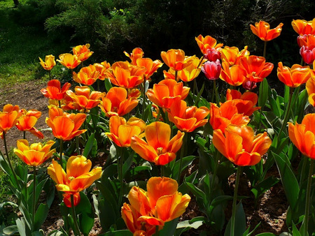 Тюльпановые реки и озера сливаются в традиционные украинские узоры, воспроизводящие Петриковскую роспись. Прелестно выглядят тюльпановые хороводы в приствольных кругах деревьев, а одиночные тюльпаны, разбросанные среди высокой сочной травы, напоминают красочный разноцветный луг.