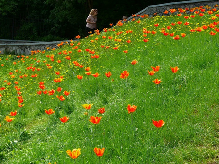 Киевские холмы на Печерске снова расцветились яркими красками – цветут тюльпаны. На площади более 3 тысяч квадратных километров 300 тысяч луковиц тюльпанов 22 ранних и поздних сортов голландской селекции были высажены неутомимыми руками сотрудников компании «КиевЗеленстрой».
