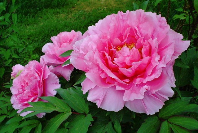 Зацветают растения на 3-й год, наполняя сад чудесным тонким ароматом. Эти растения эффекты на всех стадиях своего развития, доставляют наслаждение даже пробивающиеся из земли красные ростки – сильные, полные земных соков. Не успеешь оглянуться, как развернулась ажурная листва. О цветах и говорить нечего: пусть не долог их век, но они наполняют весь сад счастьем. И дальше кусты «держат форму», а к осени листья окрашиваются в приятные бронзовые и красно-коричневые тона, которые выделяются на общем золотистом фоне и сохраняются до заморозков. Форма и расцветка кустов подсказывают, что не нужно высаживать их сплошной полосой на партере. Распространенный прием – посадка пионов одиночно или группами по 3 штуки на углах партера. Они, как и розы, воспринимаются с близкого расстояния. Желание людей подойти к цветущему кусту, рассмотреть оттенки лепестков, вдохнуть их волнующий аромат естественно, и его надо удовлетворить. И лучше всего сделать это в своих владениях. Сад, где растет царь цветов, без зазрения можно назвать «царским садом».