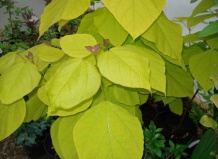 Еще одно достойное внимание украшение сада в районах Украины от центральных и южнее катальпа бигнониевая ‘Aurea’ - Catalpa bignonioides ‘Aurea’. Небольшое дерево с округлой кроной, 6-10 м высотой и 5-8 м шириной, довольно медленнорастущее, а потому сохраняющее практически без обрезки шаровидную, позже зонтиковидную форму. Ароматные белые цветы собраны в крупные, экзотического вида метельчатые соцветия, покрывают дерево в конце мая- июне. Листья довольно крупные, сердцевидные, распускаются поздно (поэтому под ним можно с успехом высаживать позднецветущие сорта луковичных и многолетних растений) сначала яркие, золотисто-желтые, затем лимонно-желтые постепенно становящиеся светло-зелеными. Дерево относительно зимостойкое, будет лучше развиваться на достаточно увлажненных суглинистых почвах , но без застоя воды.