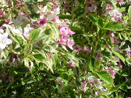 Вейгелы исключительно красивые кустарники как в цветущем состоянии, так и после отцветания. Среди всего разнообразия вейгел хочется выделить сорт 'Nana Variegata', который на протяжении всего сезона благодаря бело-золотитой кайме на листьях, дополнительно окрашенных в розовый во время роспуска и осенью, выглядит очень свежо и романтично.