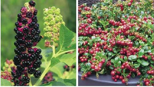 Плоды лаконоса ягодного (Phytolacca acinosa), напоминающие ежевику, использовали раньше для подкрашивания светлых вин и кондитерских изделий, однако косточки этого растения ядовитые. Лаконос достигает до 150 см в высоту. |