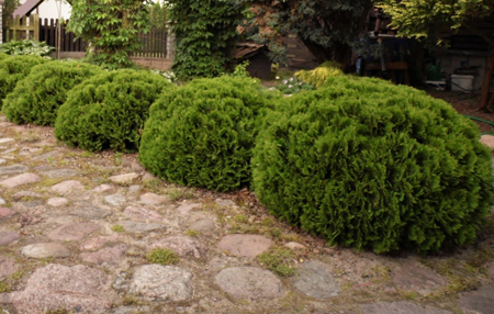 Шаровидная форма кроны у всех этих выше перечисленных сортов туи формируется без стрижки, но все они хорошо поддаются стрижке и могут успешно применяться в низких сомкнутых бордюрах или низкорослых живых изгородях, также в солитерных посадках в виде шаровидных кустарников. Отлично смотрится в составе ландшафтных групп. Если использовать эти виды туи в солитерных посадках, то крону на зиму желательно связывать, дабы ее не повредил мокрый снег. Перечисленные сорта зимостойкие, чувствительны к засухе, требуют довольно плодородных, свежих суглинистых почв.