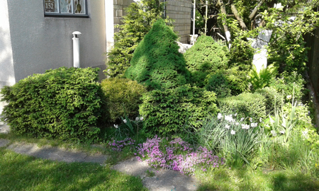 Кроме вечнозеленых кустарников описанных выше, для низких живых изгородей, бордюров, округлых топиарных форм и пр. альтернативой самшиту, в некоторых случаях, могут быть карликовые и низкорослые декоративные формы (сорта) хвойных деревьев .
