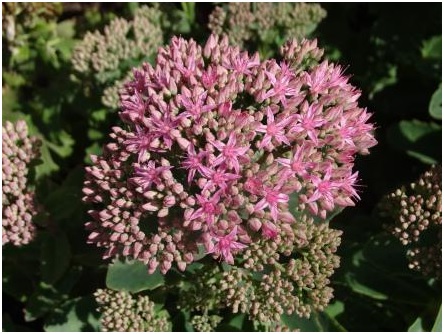 7. Очиток (Sedum spectabile): вначале имеет низкорастущие структурные зеленые почки, затем в начале осени цвет становится розовым; хорошее поздноцветущее растение для опылителей.