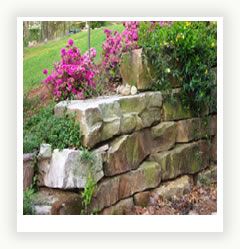 Таким образом, уложите меньшие камни по обе стороны от основного. Старайтесь, чтобы слои располагались горизонтально Промежутки между камнями заполните землей и утрамбуйте. Теперь переходите к укладке второго ряда камней. Продолжайте укладывать камни ряд за рядом пока не уложите их все.