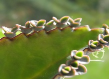 Через 1—3 года бриофиллум достигает 50 см в высоту, становится мощным, декоративным. Особенно радуют глаз его сочные листья с многочисленными отростками по краям. На лето растение полезно выносить в сад или на балкон и устанавливать в защищенном от ветра месте.