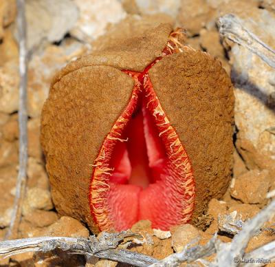 Гиднора африканская представляет собой цветок-паразит, который можно встретить в сухих пустынях на юге Африки. Корни растения уходят далеко под землю, где присасываются к другим растениям и забирают у них питательные вещества. Сам цветок может не появляться на поверхности по нескольку лет, пока не произойдет выпадение достаточного количества осадков. Когда же это происходит, ярко окрашенный внутри цветок гидноры может вырастать до 10 или даже 15 сантиметров, привлекая своим раскрывшимся бутоном и гнилостным запахом жуков, которые помогают ему опыляться.