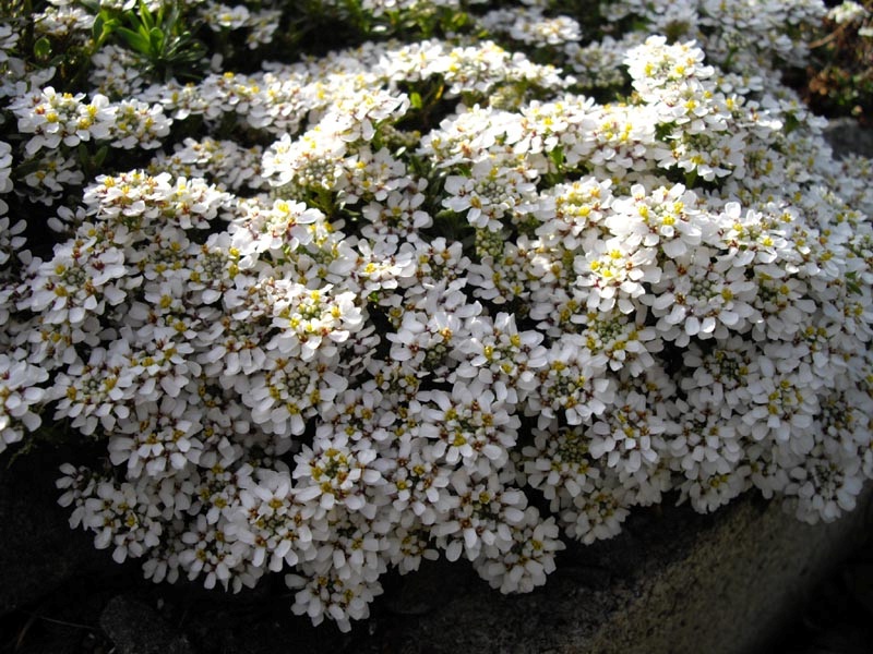 Иберис – растение высотой до 15 см, с белыми, розовыми или фиолетовыми цветками. Высаживают небольшими группами на клумбах, в бордюрных посадках, в качестве почвопокровного растения, в каменистых садиках