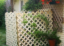 Примечание: Для удобства мы попросили работников склада, где мы купили эту деревянную решетку, разрезать ее на куски необходимого нам размера. Впрочем, это можно сделать и самим при помощи ручной пилы.