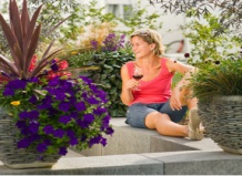 Эта композиция тон в тон подойдет для тех, кому по душе нежный розовый цвет. Она соединила в себе ампельную петунию «Sweet Bells Jamberry» розового цвета и петунию сорта «Sweet Pleasure Painted Pink», бальзамина Валлера с малиновыми махровыми цветками, гауру линдхеймера «Corinas Choice», ампельную вербену «Summerdreams Patio Coral Pink», бакопу «Copa Double White» с поникающими побегами, усыпанными некрупными белоснежными цветками.