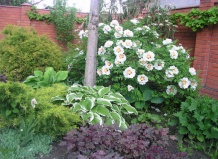 Нельзя не упомянуть всеми любимую сирень. В мире насчитывается 28 видов сирени, а уж сортов- многие тысячи. В нашем регионе раньше всех зацветает сирень пушистая S. pubescens- очень ароматная. Следом за ней зацветает ажурной пеной сирень китайская. Самые популярные сорта сирени обыкновенной в рекомендации не нуждаются. Трудно представить любой двор без хотя бы одного куста сирени. Это очень неприхотливое и благодарное растение, цветет в мае на протяжении 2-3 недель. Если высадить еще и позднюю сирень юньнаньскую S. junnanensis, можно продлить период цветения сиреней до 2 месяцев. Очень красива сирень венгерская, но ее запах нравится не всем.
