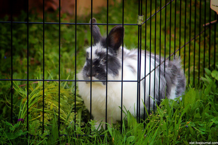 Многие дачники содержат на участке кроликов, в том числе декоративных. Очень полезно для кролика пастись на травке - газоне или просто заросшем сорняками участке. Чтобы животное не убежало, изготовьте крупную проволочную клетку без дна и передвигайте ее по мере поедания животным травяного покрова. Не забывайте, что в летнюю жару у кроликов должна быть возможность спрятаться в тень, а в холодную или дождливую погоду - в домик под укрытие. Не оставляйте клетку с вашим питомцем без присмотра. Следите, чтобы животные не обгладывали кору кустарников и деревьев. Для этого на стволик можно надеть рукав из проволочной сетки или спираль из жесткого материала (пластика, проволоки и т.д.). Помет кроликов - ценное органическое удобрение, которое можно добавлять в компост.