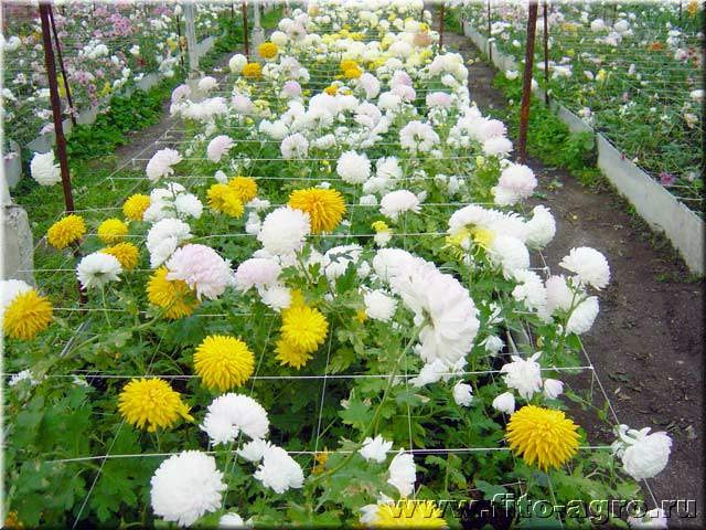 О подвязке высокорослых цветущих растений (георгины, гладиолусы, хризантема, крупноцветковый нивянник и т.п.), особенно для среза или на выставку, нужно позаботится заранее. Когда растения только начинают подрастать, над ними на вбитых по периметру кольях укрепляют крупноячеистую сетку, которую постепенно поднимают по мере роста цветоносов. Можно также закрепить дополнительные слои сетки. При такой подвязке возможно вырастить цветки большого размера на ровных непрогибающихся стеблях.