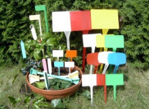 У страстных коллекционеров растений со временем может возникнуть путаница в названиях сортов. Чтобы этого не произошло, заранее приготовьте достаточное количество этикеток, которые можно нарезать ножницами из подходящих пластиковых достаточно прочных коробок или емкостей. Чтобы этикетки не портили вид сада, можно их сделать прозрачными или неброских цветов- зелеными, серыми, бежевыми. Полезно иметь бирки с продетыми в дырочку проволочками или имеющимися в продаже специальными пластиковыми держателями для подвязки растений, для пометки деревьев и кустарников, которые цепляются на ветку в незаметном месте, например, снизу или от забора. Для травянистых растений заготавливают полоски шириной несколько сантиметром и длиной около 15см, которые затем втыкаются в почву. Несмываемым маркером укажите сорт и необходимую информацию, например, время посева семян или источник приобретения саженца. Можно занести название сорта в вашу записную книжку под определенным номером, а на этикетке соответствующую цифру написать маркером или лаком для ногтей. Раньше часто изготавливали бирки из плотной фольги. Если писать на мягкой поверхности, буквы на фольге получаются выпуклыми, и такая надпись не смывается и не выгорает.