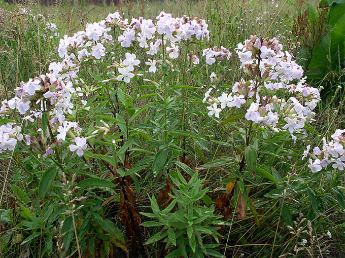 Среди растений-пенообразователей в нашей местности на первом месте находится мыльнянка лекарственная, которую еще называют «мыльной травой», «красным мыльным корнем», «собачьим мылом». Название растения обусловлено тем, что при растирании корней мыльнянки с водой образуется пышная пена, которая длительное время не оседает. Особенно хорошо мылятся высушенные и измельченные корневища, поэтому их готовят впрок: сушат, перемалывают в порошок, разводят водой и моются или стирают вещи. После такой стирки вещи приобретают приятный запах и в них не заводится моль. Мыльнянка содержит 32% сапонина. Процесс можно ускорить нагреванием воды: прокипятив несколько минут небольшое количество корешков. В полученной «эссенции» можно и стирать, и купаться, и волосы мыть - с пользой для себя и без ущерба для природы. Во время мытья тела мыльнянкой, не следует вдыхать или пробовать пену, так как она может вызвать чихание.