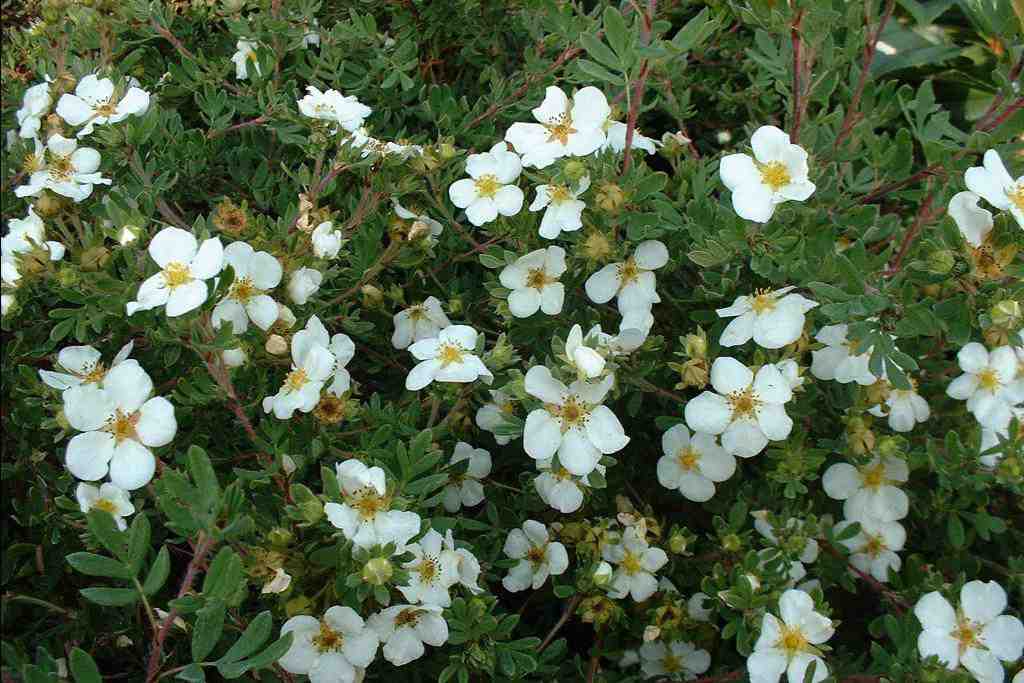 У других сортов цветки могут быть белые, розовые или оранжевые. Сорт 'Abbotswood'-чисто-белый, 'Falkenburg' и 'Tilford Cream'- кремово-белые, 'Red Асе '-компактный, красно-оранжевый, 'Princess ' и ‘Glenroy Pinkie’- нежно-розовыe , 'Royal Flush' - темно-розовый и 'Tangerine '- бронзово-оранжевый. Лапчатка кустарниковая очень светолюбива, требует сухого места с хорошим дренажом. Размножают их делением куста, черенкованием в начале лета, а видовые - посевом семян под зиму.