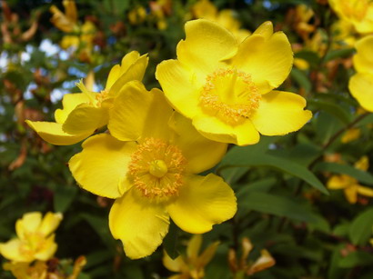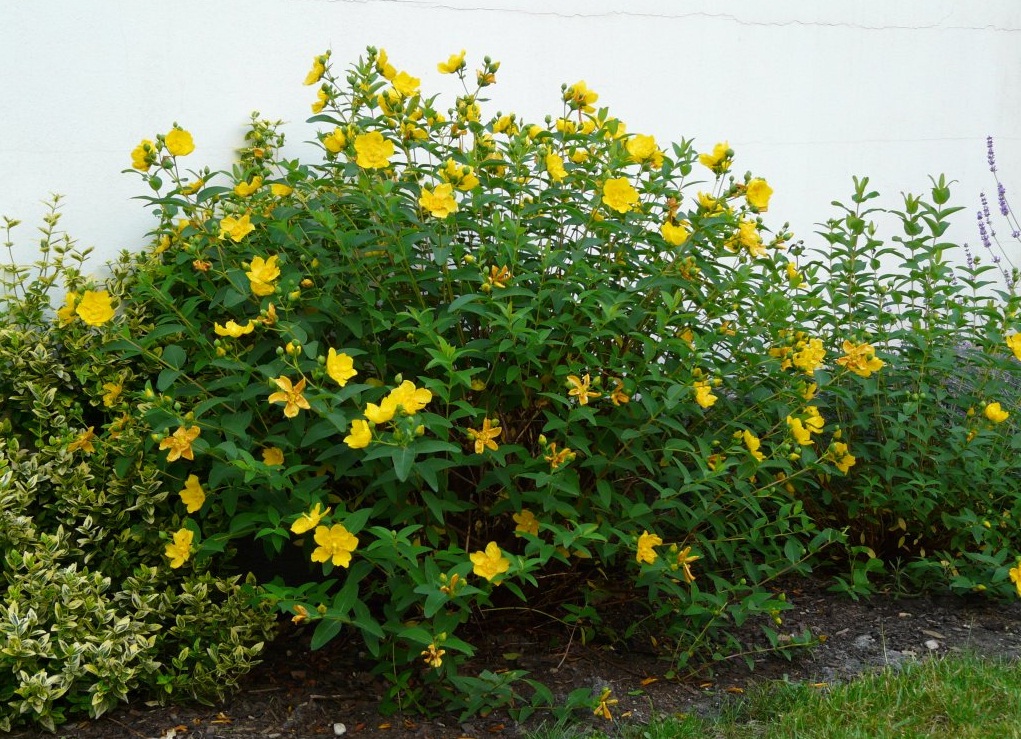 Можно попробовать выращивать один из многочисленных видов семейства зверобойные, самый холодостойкий из них - зверобой китайский (Hypericum chinense) – родом из Японии и Китая. Это полувечнозеленый кустарник до 60 см высотой с элиптическими листьями 4-7 см длиной, цветущий в июне-июле ярко-желтыми цветками, одиночными или в малоцветковых полузонтиках. Этот вид светолюбив, но в степных регионах его лучше высаживать в полутени деревьев; к почве нетребователен, засухоустойчив, однако в жаркое время края листьев могут подсыхать, что сказывается отрицательно на декоративных качествах куста. В суровые зимы может обмерзать до уровня снежного покрова, но хорошо отрастает и цветет в тот же сезон. Зверобой хорошо смотрится одиночно, куртинами или в виде бордюров. Размножается семенами, делением куста и черенками.