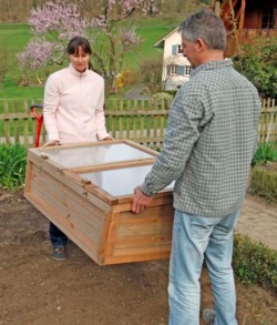Совет: Для сооружения парника подбирают невлажное и светлое место. Идеально разместить на южном или юго-восточном склоне, что гарантирует в переходные сезоны – весной и осенью – при более низком положении солнца лучшую инсоляцию. Не стоит недооценивать силу зимнего солнца. В умеренно солнечные дни температура в парнике поднимается так сильно, что его следует проветривать. Однако в очень холодные ночи парник необходимо дополнительно укрыть воздушно-пузырьковой пленкой, чтобы защитить молодые растения от мороза. Парник от немецкого производителя Feliwa, изображенный на рисунке, имеет размеры 120 см в длину и 80 см в ширину. Он состоит из рамы, изготовленной из древесины сосны, и крышки из теплоизоляционного поликарбоната. Для сборки такой конструкции Вам понадобится всего отвертка или шуруповерт.