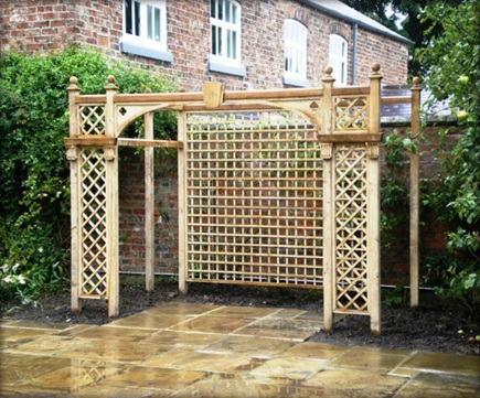 В целом, красивые деревянные шпалеры наиболее естественно вписываются в любой стиль сада и отлично подходят к любому дому. Для сооружения шпалеры, закрепляющейся на стене, можно использовать различные виды древесины, но в основном отдают предпочтение еловой, сосновой или пихтовой. Перед началом работы все элементы конструкции следует обработать антисептическими средствами, которые защищают дерево от гниения, а также покрыть слоем бесцветного защитного лака, который значительно продлевает срок службы. Требуют соответствующей обработки и металлические детали, которыми укрепляют углы деревянной решетки. Деревянные несущие стойки необходимо изолировать от контакта с землей, вставив их, например, в металлические стаканы или П-образные конструкции, к которым приварен кусок толстой арматуры.