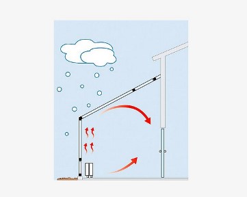 Как только температура воздуха снаружи становится на 5°С холоднее, возникает так называемый «каминный эффект»: самые теплые слои воздуха собираются под крышей и могут улетучиться непосредственно наружу. При этом через вентиляционные люки или отверстия заходит свежий, прохладный воздух.