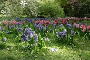 Как и в случае с другими весенними цветами, в начале лета зеленые листья гиацинтов исчезают, оставляя оголенные места в цветнике. Поэтому следует заранее продумать совместную посадку гиацинтов с красивыми многолетниками, которые замаскируют образовавшиеся пустоты.
