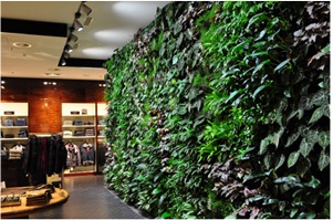 Центр магазина украшает сенсационная стена из 1000 живых растений. Ее длина составляет 10м, а высота – 3м. Шумопоглощение и высокое испарение воды «живой» стеной) создают положительный микроклимат для сотрудников и посетителей магазина. Посетив его однажды, покупатели возвращаются сюда снова и снова.