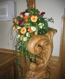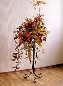 Чтобы заполнить пространство, Вы можете использовать длинные, цветущие плети или ветви дерева, помещенные в урну на постаменте, с большим количеством свисающей зелени.