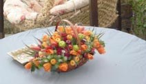 Обновите образ пространства перед домом размещением композиции, в которой смешаны сезонные цветы с растениями на приусадебном участке. Это могут быть различные веточки, трава. Чтобы подчеркнуть естественный вид такой композиции, попросите флориста использовать глиняный горшок, или плетеную корзину в качестве контейнера.